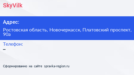 SkyVilk по адресу Ростовская область, Новочеркасск, Платовский проспект, 90а в дальнейшем Организация, размещена в следующих категориях: