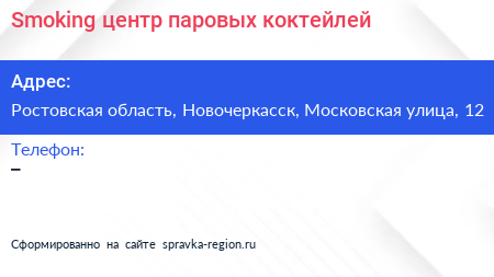 Smoking, центр паровых коктейлей по адресу Ростовская область, Новочеркасск, Московская улица, 12 в дальнейшем Организация, размещена в следующих категориях: