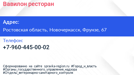 Вавилон, ресторан по адресу Ростовская область, Новочеркасск, Фрунзе, 67 в дальнейшем Организация, размещена в следующих категориях: