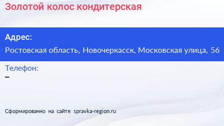 Золотой колос, кондитерская по адресу Ростовская область, Новочеркасск, Московская улица, 56 в дальнейшем Организация, размещена в следующих категориях:
