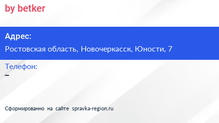 by betker по адресу Ростовская область, Новочеркасск, Юности, 7 в дальнейшем Организация, размещена в следующих категориях: