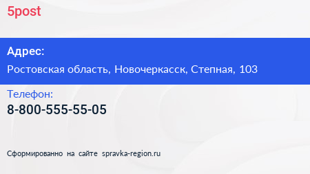 5post по адресу Ростовская область, Новочеркасск, Степная, 103 в дальнейшем Организация, размещена в следующих категориях: