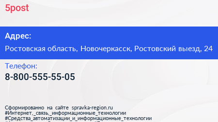 5post по адресу Ростовская область, Новочеркасск, Ростовский выезд, 24 в дальнейшем Организация, размещена в следующих категориях: