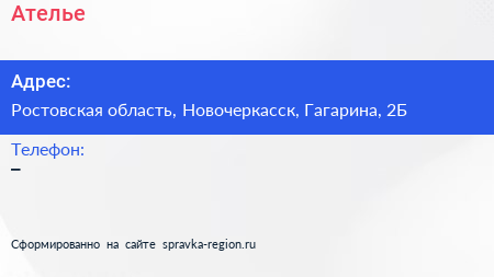 Ателье по адресу Ростовская область, Новочеркасск, Гагарина, 2Б в дальнейшем Организация, размещена в следующих категориях: