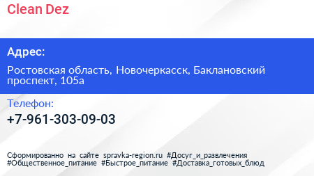 Clean & Dez по адресу Ростовская область, Новочеркасск, Баклановский проспект, 105а в дальнейшем Организация, размещена в следующих категориях: