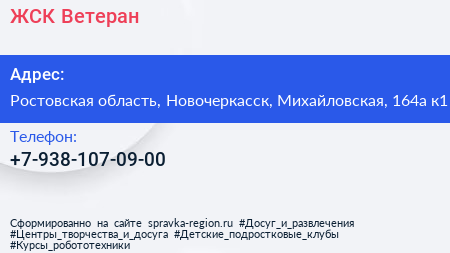 ЖСК Ветеран по адресу Ростовская область, Новочеркасск, Михайловская, 164а к1 в дальнейшем Организация, размещена в следующих категориях: