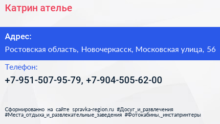 Катрин, ателье по адресу Ростовская область, Новочеркасск, Московская улица, 56 в дальнейшем Организация, размещена в следующих категориях: