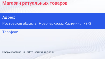 Магазин ритуальных товаров по адресу Ростовская область, Новочеркасск, Калинина, 73/3 в дальнейшем Организация, размещена в следующих категориях: