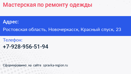 Мастерская по ремонту одежды по адресу Ростовская область, Новочеркасск, Красный спуск, 23 в дальнейшем Организация, размещена в следующих категориях:
