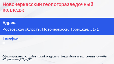 Новочеркасский геологоразведочный колледж по адресу Ростовская область, Новочеркасск, Троицкая, 51/1 в дальнейшем Организация, размещена в следующих категориях: