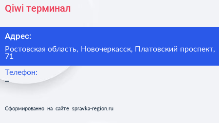 Qiwi, терминал по адресу Ростовская область, Новочеркасск, Платовский проспект, 71 в дальнейшем Организация, размещена в следующих категориях: