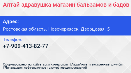 Алтай-здравушка, магазин бальзамов и бадов по адресу Ростовская область, Новочеркасск, Дворцовая, 5 в дальнейшем Организация, размещена в следующих категориях: