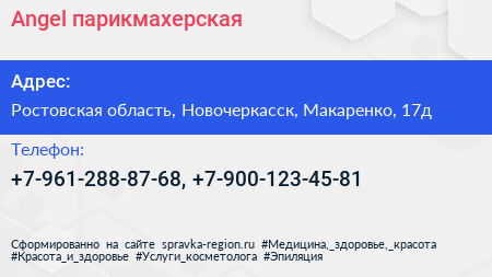 Angel, парикмахерская по адресу Ростовская область, Новочеркасск, Макаренко, 17д в дальнейшем Организация, размещена в следующих категориях: