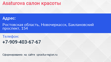 Asaturova, салон красоты по адресу Ростовская область, Новочеркасск, Баклановский проспект, 154 в дальнейшем Организация, размещена в следующих категориях: