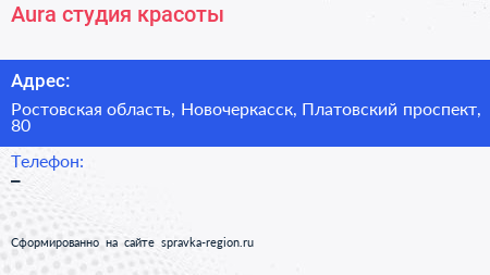 Aura, студия красоты по адресу Ростовская область, Новочеркасск, Платовский проспект, 80 в дальнейшем Организация, размещена в следующих категориях: