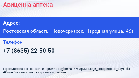 Авиценна, аптека по адресу Ростовская область, Новочеркасск, Народная улица, 46а в дальнейшем Организация, размещена в следующих категориях: