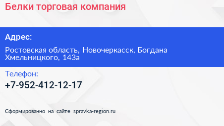 Белки, торговая компания по адресу Ростовская область, Новочеркасск, Богдана Хмельницкого, 143а в дальнейшем Организация, размещена в следующих категориях: