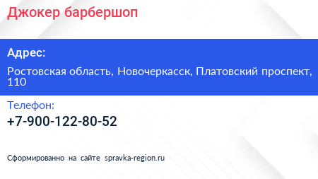 Джокер, барбершоп по адресу Ростовская область, Новочеркасск, Платовский проспект, 110 в дальнейшем Организация, размещена в следующих категориях: