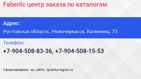 Faberlic, центр заказа по каталогам по адресу Ростовская область, Новочеркасск, Калинина, 73 в дальнейшем Организация, размещена в следующих категориях: