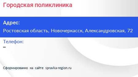 Городская поликлиника по адресу Ростовская область, Новочеркасск, Александровская, 72 в дальнейшем Организация, размещена в следующих категориях: