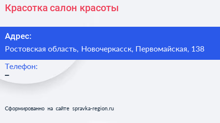 Красотка, салон красоты по адресу Ростовская область, Новочеркасск, Первомайская, 138 в дальнейшем Организация, размещена в следующих категориях: