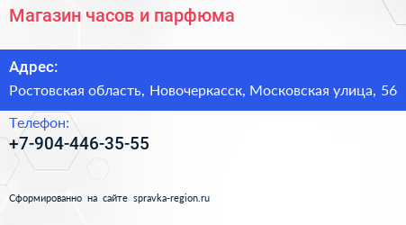 Магазин часов и парфюма по адресу Ростовская область, Новочеркасск, Московская улица, 56 в дальнейшем Организация, размещена в следующих категориях: