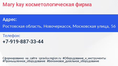 Mary kay, косметологическая фирма по адресу Ростовская область, Новочеркасск, Московская улица, 56 в дальнейшем Организация, размещена в следующих категориях: