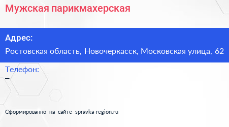 Мужская парикмахерская по адресу Ростовская область, Новочеркасск, Московская улица, 62 в дальнейшем Организация, размещена в следующих категориях: