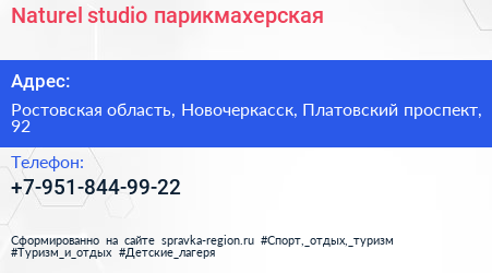 Naturel studio, парикмахерская по адресу Ростовская область, Новочеркасск, Платовский проспект, 92 в дальнейшем Организация, размещена в следующих категориях:
