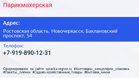 Парикмахерская по адресу Ростовская область, Новочеркасск, Баклановский проспект, 54 в дальнейшем Организация, размещена в следующих категориях: