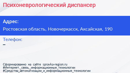 Психоневрологический диспансер по адресу Ростовская область, Новочеркасск, Аксайская, 190 в дальнейшем Организация, размещена в следующих категориях: