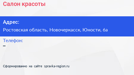 Салон красоты по адресу Ростовская область, Новочеркасск, Юности, 6а в дальнейшем Организация, размещена в следующих категориях: