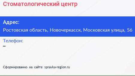 Стоматологический центр по адресу Ростовская область, Новочеркасск, Московская улица, 56 в дальнейшем Организация, размещена в следующих категориях: