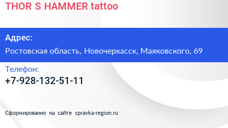 THOR`S HAMMER tattoo по адресу Ростовская область, Новочеркасск, Маяковского, 69 в дальнейшем Организация, размещена в следующих категориях: