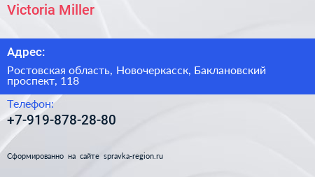 Victoria Miller по адресу Ростовская область, Новочеркасск, Баклановский проспект, 118 в дальнейшем Организация, размещена в следующих категориях: