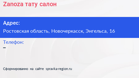 Zanoza, тату-салон по адресу Ростовская область, Новочеркасск, Энгельса, 16 в дальнейшем Организация, размещена в следующих категориях: