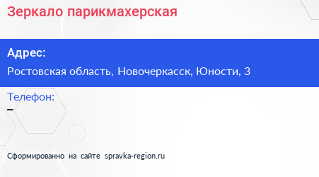 Зеркало, парикмахерская по адресу Ростовская область, Новочеркасск, Юности, 3 в дальнейшем Организация, размещена в следующих категориях: