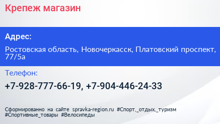 Крепеж, магазин по адресу Ростовская область, Новочеркасск, Платовский проспект, 77/5а в дальнейшем Организация, размещена в следующих категориях: