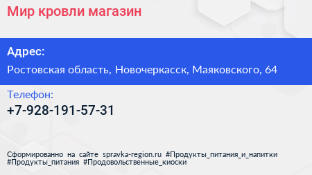 Мир кровли, магазин по адресу Ростовская область, Новочеркасск, Маяковского, 64 в дальнейшем Организация, размещена в следующих категориях: