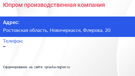 Юпром, производственная компания по адресу Ростовская область, Новочеркасск, Флерова, 20 в дальнейшем Организация, размещена в следующих категориях: