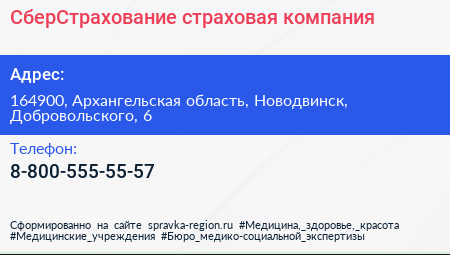 СберСтрахование, страховая компания по адресу 164900, Архангельская область, Новодвинск, Добровольского, 6 в дальнейшем Организация, размещена в следующих категориях: