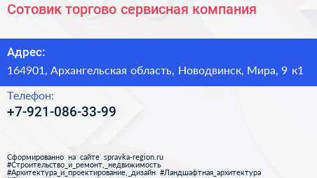 Сотовик, торгово-сервисная компания по адресу 164901, Архангельская область, Новодвинск, Мира, 9 к1 в дальнейшем Организация, размещена в следующих категориях:
