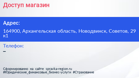 Доступ, магазин по адресу 164900, Архангельская область, Новодвинск, Советов, 29 к1 в дальнейшем Организация, размещена в следующих категориях: