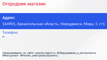 Огородник, магазин по адресу 164901, Архангельская область, Новодвинск, Мира, 5 ст1 в дальнейшем Организация, размещена в следующих категориях: