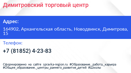 Димитровский, торговый центр по адресу 164902, Архангельская область, Новодвинск, Димитрова, 15 в дальнейшем Организация, размещена в следующих категориях: