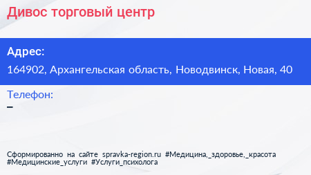 Дивос, торговый центр по адресу 164902, Архангельская область, Новодвинск, Новая, 40 в дальнейшем Организация, размещена в следующих категориях: