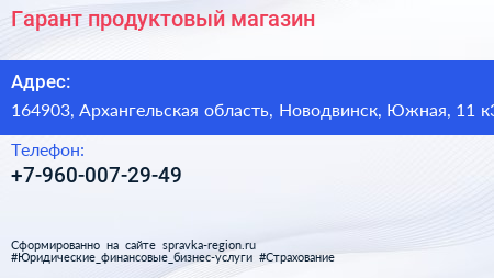 Гарант, продуктовый магазин по адресу 164903, Архангельская область, Новодвинск, Южная, 11 к3 в дальнейшем Организация, размещена в следующих категориях:
