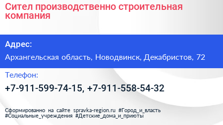 Сител, производственно-строительная компания по адресу Архангельская область, Новодвинск, Декабристов, 72 в дальнейшем Организация, размещена в следующих категориях:
