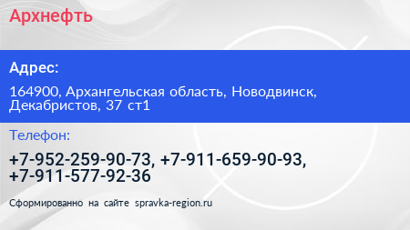 Архнефть по адресу 164900, Архангельская область, Новодвинск, Декабристов, 37 ст1 в дальнейшем Организация, размещена в следующих категориях: