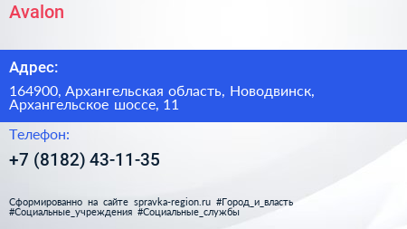 Avalon по адресу 164900, Архангельская область, Новодвинск, Архангельское шоссе, 11 в дальнейшем Организация, размещена в следующих категориях:
